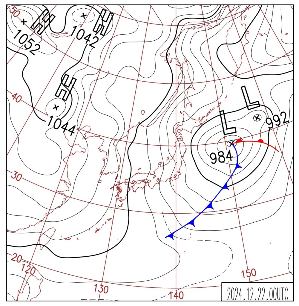 【2024年12月22日の天気図 強い冬型の気圧配置】