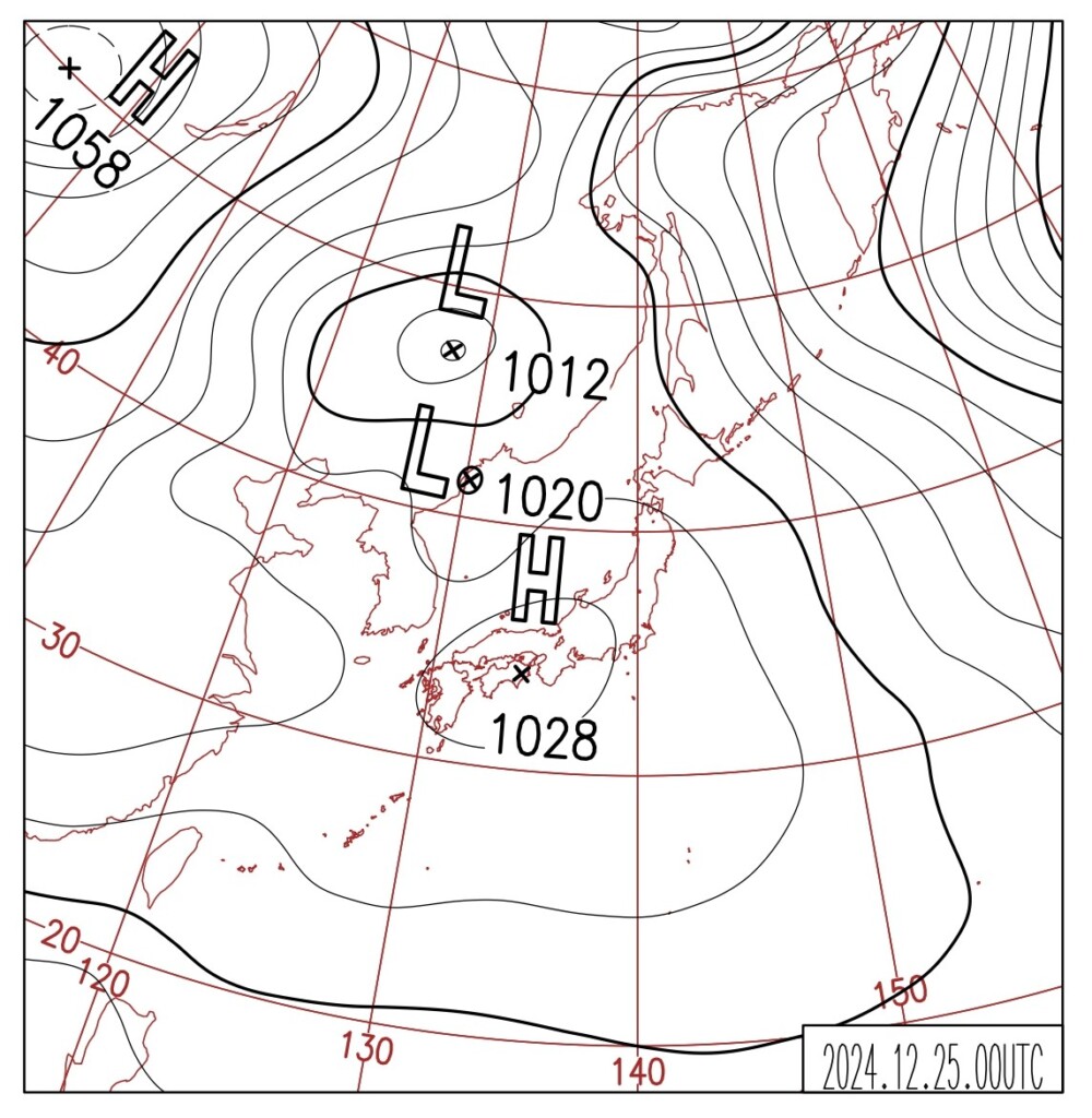 【2024年12月25日の天気図 穏やかなクリスマス】